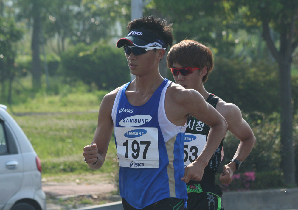 올해 8월 모스크바세계육상선수권 남자경보20km에 출전하는 최병광 선수는 무더운 날씨에 자신의 컨디션을 체크하며 더위와 사투를 펼치고 있다.