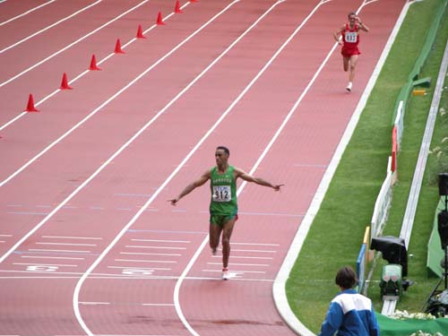 14. 31km 지점에서 스퍼트, 계속 선두를 달리던 모로코의 가리브가 운동장 입구에서 마지막 스피드를